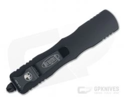 Microtech Dirac Black Tactical Full Serrated Double Edge 204P Top Slide OTF Automatic Knife 225-3T