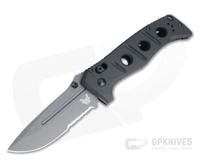 The Benchmade Adamas line of folders was designed by custom knife maker Shane Sibert in collaboration with Major Jeff Strueker of the US Armed Forces. Major Strueker is a decorated war veteran who served in the armed forces from 1987-2011, mostly in the 75th Ranger Regiment, and is a huge fan of Benchmade knives. Built on the robust, ambidextrous AXIS lock platform, the Adamas delivers tank like durability you can count on. This version comes with a partially serrated, gray Cerakote coated, CPM Cruwear blade and black G10 handle scales.