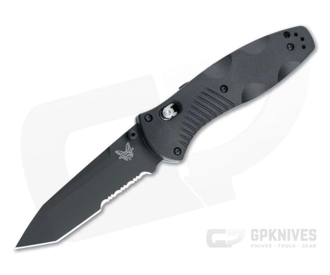 The first Benchmade with AXIS Assist technology, the Barrage is a practical daily carry folder with fast and decisive deployment. Fully ambidextrous, the Barrage has a rugged Valox polymer handle over stainless steel liners for solid reliability and the indomitable and easy to operate AXIS lock mechanism. This version has a black partially serrated 154CM stainless steel Tanto blade.