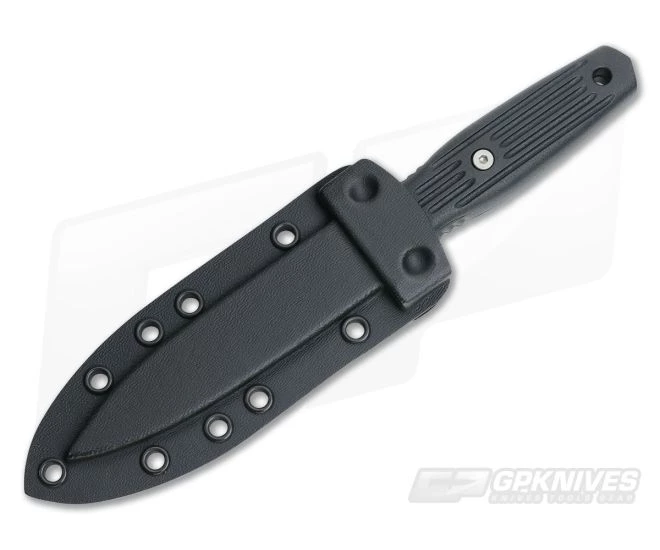 Boker A-F 546 Boot Knife with a dual edge bead-blasted 440C dagger style blade. This combat knife, an Applegate-Fairbairn collaboration, has a full tang blade that has been hollow ground on one side. The handle is injection molded nylon with grooves running lengthwise for a secure grip. Steel weights have been positioned inside the handle for the perfect feel and balance. Bead-blasted brass guard has been serialized. Includes a kydex sheath and tek-lok for multiple carry options.
