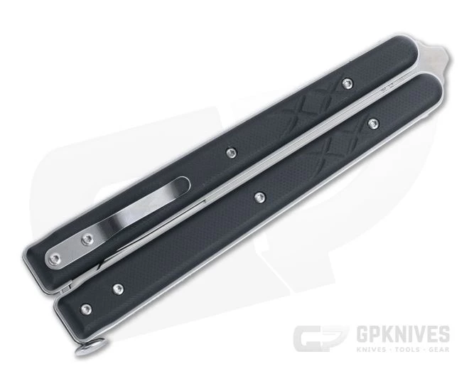 Modern implementation of a traditional concept makes the Boker Plus Tactical Balisong an impressive and robust tool that is compact enough for daily carry. Stainless steel liners and solid G10 scales provide balanced weight for fast handling and a compound ground D2 tool steel blade offers solid cutting performance, durability and ease of maintenance. This large version comes with black G10 handle scales and a satin finished, compound ground, harpoon blade.