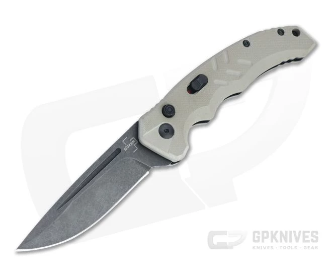 Designed as a tactical automatic knife that can still handle your everyday cutting tasks, the Boker Plus Intention II sports a D2 blade with push button coil spring deployment and a classic drop point hunter design. Milled for a secure grip even in unfavorable conditions, the tough G10 handles are ergonomic and comfortable. This version comes with a black stonewashed blade and Coyote tan handles.