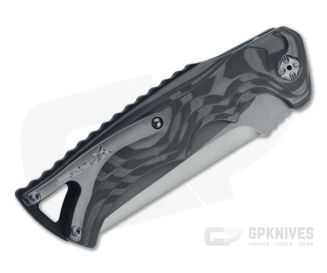 Blade:Â With a utilitarian straight clip point profile, the hollow ground blade delivers excellent slicing and piercing performance with solid durability. RWL34 stainless steel offers balanced performance for daily use and ease of maintenance. A rugged black DLC coating enhances corrosion resistance, is discreetly non-reflective, and has been stonewashed for enhanced wear hiding ability. The blade deploys fast and smooth via the button operated, automatic coil spring mechanism. The blade is marked with Brian’s signature logo on the front.