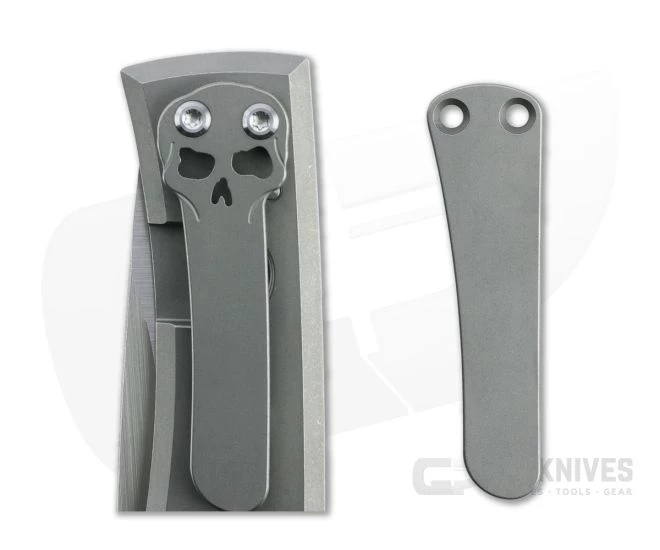 Carries via a right hand milled titanium clip. Skull clip installed, plain clip included.