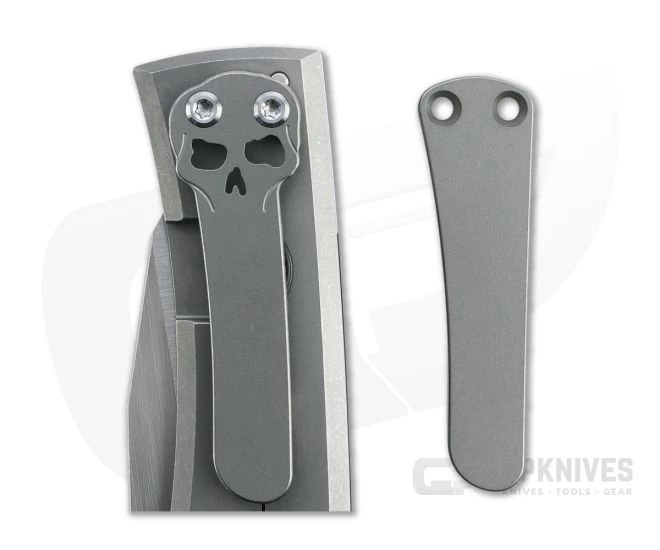 Carries via a right hand milled titanium clip. Skull clip installed, plain clip included.