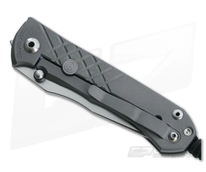 The Handle: Two thick slabs of titanium feature chamfered edges and machined grooves for an all-around comfortable grip. Ergonomics of the handle are spot on with comfortable places for fingers to rest. Both pieces are entirely sandblasted creating a matte grey appearance with very fine texturing. The grip is welcoming in the majority of medium to large hands. The Integral Frame Lock was created by Mr. Chris Reeve and continues to be a staple in the knife making industry. It’s reliable, easy to use and virtually maintenance free. This one extends a bit lower than the show scale and given a machined groove for easy access. All titanium hardware comes standard on the Umnumzaan including the Silver barrel spacer and lanyard-attached spacer at the end. A CR lock bar stabilizer prevents over travel of the lock bar. The Umnumzaan also pioneered the Ceramic Ball-End Integral Lock mechanism now used on the Inkosi models. A ceramic ball creates the interface between the blade locking surface and the integral locking arm surface. The ball doubles to drop into a detent on the blade to ensure the blade does not open accidentally.