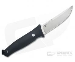Handle: The clean, simple lines of the black G10 scales give the knife a sleek, minimalist with a practical design that is comfortable and secure in multiple grips. A subtle index choil and thumb ramp pair with the tapered pommel end to lock the knife in hand, affording softer texture for fast transitions in the hand.