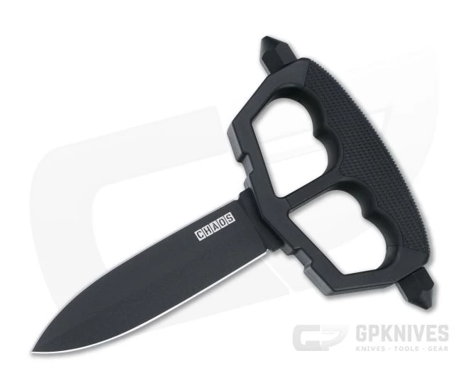 Cold Steel makes some of the strongest push knives on the market and the Chaos is a perfect example. Designed for use by military and special operations personnel, the Chaos Push Knife is a formidable dagger with a triple threat blade and knocker pommels combination while the D-guard handle design provides a safe, secure grip in any situation. This version has a black SK-5 carbon steel blade and dual polymer handle.