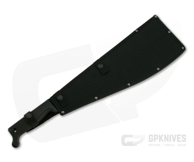 The Cold Steel Heavy Machete is just what it sounds like, a broad, stout and heavy machete with a forward weight and amazing chopping power. The compact blade delivers raw cutting power thanks to a blade that widens to over 4 inches at the tip while still being convenient to carry. The blade is made from 1055 carbon steel for toughness with a baked-on, matte black finish for corrosion resistance. The wide, flat-tipped blade is perfect for laying waste to any brush needed clearing. The textured Polypropylene handle is durable, weather resistant and offers excellent traction in the hand. Includes snap closure, nylon sheath for belt carry.