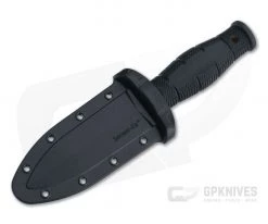 The Mini Leatherneck from Cold Steel is a small dog with plenty of fight in it. This compact, budget friendly iteration of the Leatherneck fighting knife makes a perfect daily carry fixed blade when you need robust, tactical performance. This version comes with a satin finished, 8Cr13MoV stainless steel, double edge spear point blade and black Kray-Ex polymer handle.