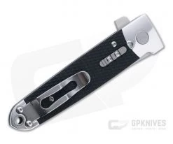 Handle: Durable and lightweight, two solid billets of mirror polished 6061 aluminum create the bolster, and frame, inlaid with checkered black G10 for a secure and comfortable grip. A stainless liner forms a strong leaf spring lock that is backed up by a slide safety for a lock that is extremely resistant to shock and impact while being easy to operate with one hand.
