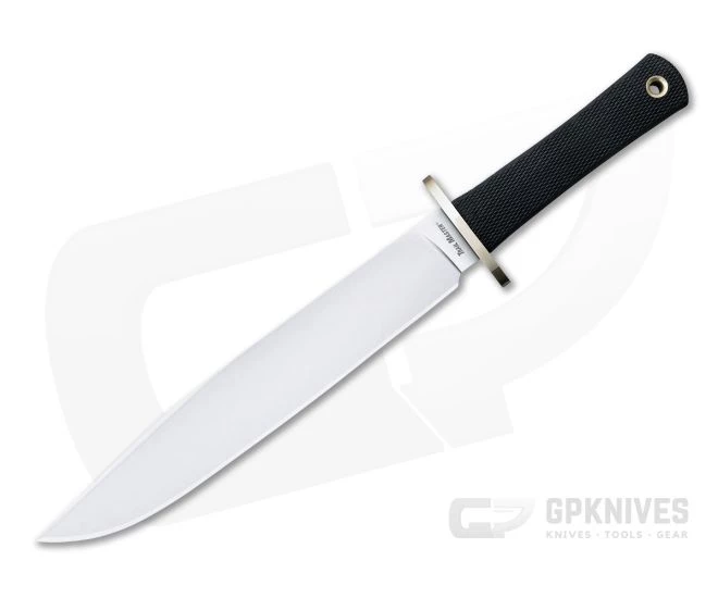 The Cold Steel Trail Master is part classic clip point Bowie and part outdoor field knife. This knife has the iconic look of the clip point hunting knife known as a Bowie knife with a timeless coffin shaped handle and brass dual guard. The knife is compact enough for easy carry while being robust enough for camping and hunting tasks. This version comes with an ultra tough CPM-3V high carbon alloy steel blade and Kray-Ex rubber for the handle.