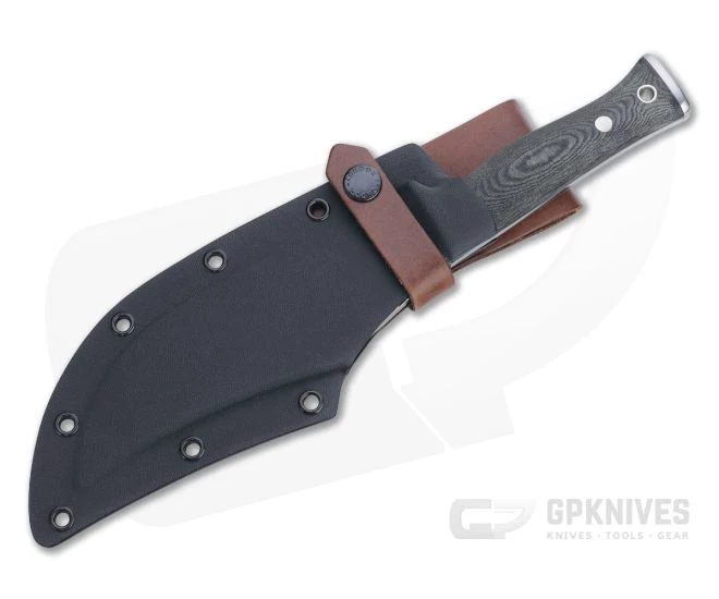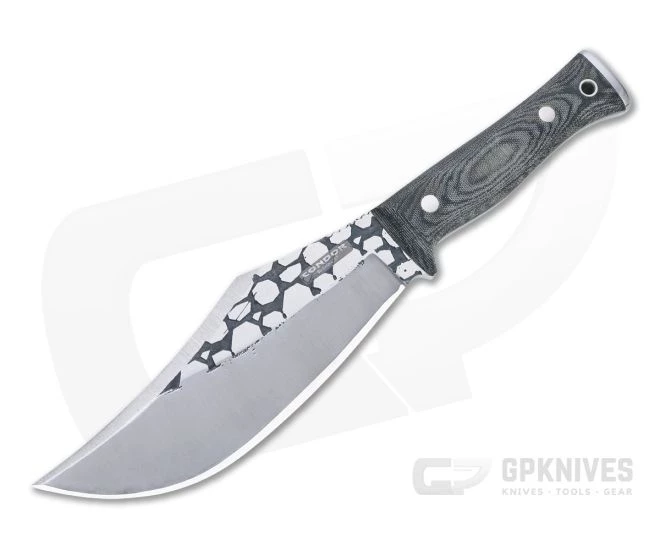 Handle: Dual steel pins attach the blasted and contoured canvas Micarta scales to the full tang for a comfortable, high traction handle perfect for bushcraft, survival or tactical use. The palm swell fills the hand nicely while a forward guard gives added safety and the flat steel pommel end lends balance and added utility for hammering.
