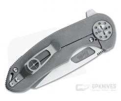 Handle:Â Dual slabs of blasted and tumbled titanium joined by a jimped partial back spacer form the handle with chamfered edges for comfort. This slim variant has slightly thinner slabs reducing the weight along with internal milling. The integral frame lock is smooth, solid, and secure. Includes zipper pouch, patch, sticker, and signed certificate of authenticity.