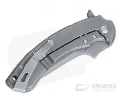 Handle:Â Joined with a composite partial back spacer, the handle consists of a contoured canvas Micarta scale on the front and a chamfered, acid stonewasehd titanium frame on the back. The contoured front scale delivers good ergonomics with a curving design that offers comfort and security in multiple grips. Cut from the titanium slab, the integral frame lock is equipped with a hardened steel lock face/over travel stop that delivers reliable and smooth operation over the life of the knife. A generous hole at the pommel allows for lanyard attachment. Satin Torx hardware completes the construction.