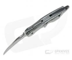 Blade: At just under three inches, the hawkbill blade has a fine point and razor sharp edge for piercing and slashing cuts. Made from Bohler N690Co stainless steel the blade is easy to maintain and has a top swedge and high saber grind for balanced performance. There are three options for deployment: an integral flipper tab, eye-shaped thumbhole and the Emerson Wave feature for deployment on the draw. Which ever you choose the action is smooth and reliable thanks to durable bronze washers at the pivot.