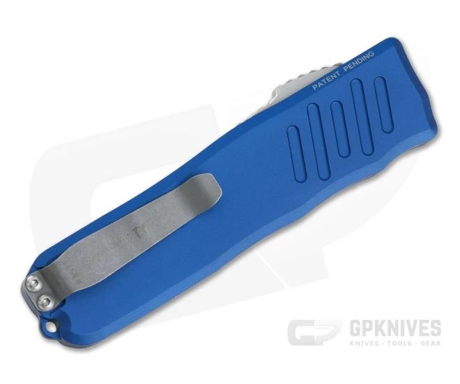 The Recon-035 is a modern and innovative, double action, out the front automatic that is perfect for everyday carry. With patented steel thumb slide base and floating blade construction the Recon-035 is smooth and reliable in its operation while having minimal play and a rock solid feel. This version comes with a stonewashed, single edge Elmax blade and Blue anodized handle.