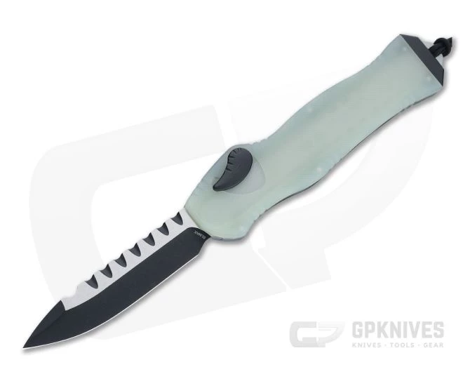 The Heretic Knives Hydra is a powerful, single action, out-the-front automatic built in an everyday carry size. Simple and robust, the Single Action Hydra is a thing of beauty and a reliable cutting tool that is a joy to use and operate. This version comes with a two-tone black Elmax drop point blade, black aluminum frame and Jade Green G10 top.