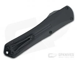 The Heretic Knives Manticore-X is the largest of the Manticore Series of double action, out the front, automatic knives. The Manticore-X has a countered aircraft grade aluminum handle with traction scallops and stylish fluted milling. This version comes with a double edge, two-tone black Elmax blade and black anodized handles with new polymer clip.