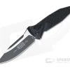 Handle: Milled, black anodized aluminum pairs with lightweight and durable G10 to deliver 5.5 inches of handle, long enough for extra large or gloved hands. G10 offers weight reduction with added visual appeal, contrasting with the black aluminum of the frame. Contoured milling and smooth edges on the handle pair with strategically placed scalloped sections for excellent comfort and traction. The front and back of the handles are sterile with company, model and serial number markings on the spine of the frame. Construction is completed with black Torx hardware visible on the back, integral lanyard hole and hardened steel glass breaker inset in the pommel.