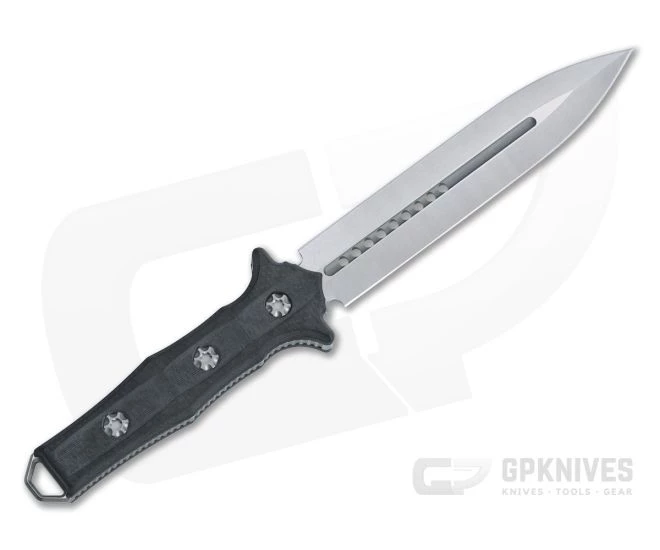 Blade: The dagger blade is symmetrically ground for strength, cutting performance and fine piercing point. Stonewashed over machine satin, the blade finish delivers a rugged look that is visually appealing and hides wear from use paired with matte gray fullers milled with holes for added style. Premium Bohler Elmax delivers balanced performance for all around use.