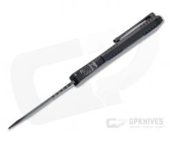 Blade:Â The aggressive Tanto blade delivers powerful piercing with balanced and durability. A coated with durable black DLC the blade has a handsome two-tone finish with satin flats and blasted and tumbled Battleworn grinds. The front flat has Predator countdown glyphs engraved on the flat. Double action automatic operation is fast, smooth, and decisive. Press the red carbon fiber stepped pyramid thumb slide up to open and down to close.