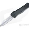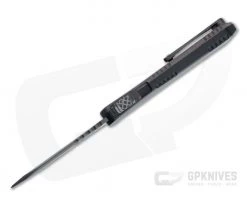 Blade:Â The aggressive Tanto blade delivers powerful piercing with balanced and durability. A coated with durable black DLC the blade has a handsome two-tone finish with satin flats and blasted and tumbled Battleworn grinds. The front flat has Predator countdown glyphs engraved on the flat. Double action automatic operation is fast, smooth, and decisive. Press the red carbon fiber stepped pyramid thumb slide up to open and down to close.