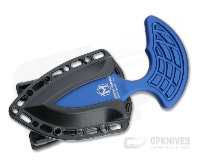 The Sleight from Heretic Knives is an innovative modular push dagger consisting of a milled aluminum handle and independent steel blade module. Durable, lightweight and weather resistant both handle and blade can be swapped with other components* from the Sleight line to meet specific needs. This version comes with a black DLC coated CPM-20CV double edge blade and blue handle.