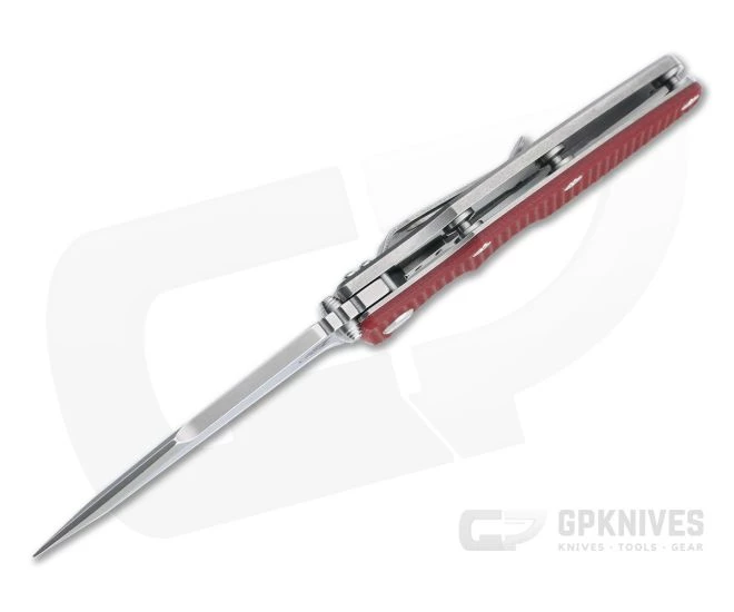 The Hinderer Knives Eklipse is a robust tactical everyday carry folder that offers an ergonomic, streamline handle design that is comfortable for extended use and carry. A +6 mm thick, solid titanium frame paired with the stainless steel lock face equipped titanium frame lock and Hinderer Lock Bar Stabilizer provide a tank like platform capable of handling intense use. The 3.5 Eklipse comes standard with the innovative Tri-Way pivot system for user customizable operation. This version features a stonewashed 20CV Harpoon Spanto blade, red G10 scale and stonewashed frame.