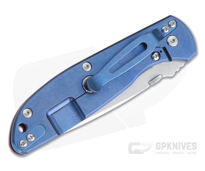 Carries via a reversible, right-hand only, Hinderer Style titanium pocket clip.