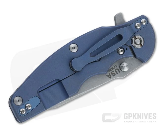 Blade:Â The 20CV spear point blade has enough belly to tackle everyday tasks while being robust enough for heavy field work. It comes with a blasted and tumbled Working Finish that hides wear and is discreetly non-reflective. Deployment is fast and smooth thanks to the innovative, user-customizable Tri-Way pivot system bearings (installed) via the dual thumb studs or flipper tab. A raised thumb ramp with comfortable jimping enhances control and power when utilized for heavy cutting.