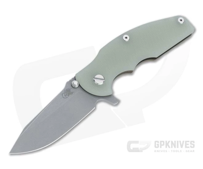The Jurassic flipper from Rick Hinderer Knives has all the curves and humps of something you might find from the Mesozoic Era, but fits right in with its 21st Century brethren. Rick outfitted this model with a nice wide spear point blade sporting a reinforced high height saber grind which pairs well with the humpbacked handle built on the typical, hard-use Hinderer frame lock construction with G10 front scale. This version comes with a Working Finish CPM-20CV blade, Battle Bronze frame and liner, and “XM” textured translucent “Jade” green G10 front scale.
