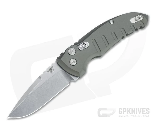 The Hogue A01 MicroSwitch is a small, hard-hitting button lock automatic. Premium materials paired with precision American manufacturing make the MicroSwitch ideal for compact daily carry. This version comes with a tumbled CPM-154 drop point blade and matte gray aluminum handles.
