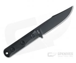 Blade: Full tang 1095 Cro-Van carbon steel comes with a matte black parkerized finish and John Ek logo etch. The short harpoon clip point profile is great for piercing and slicing with a high saber grind for strength and cutting performance. A small choil makes for easy sharpening while the single guard delivers added safety in use.