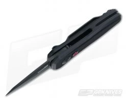 The Launch 4 mini push button automatic knife from Kershaw Knives packs alot of punch for its size. The 4 is a pointy little backup that looks good, acts fast and won’t take up much room wherever you carry it. This one is perfect for the pocket, pouch, pack or purse. Outfitted with a Black Cerakote finished spear-style blade and a Black anodized aluminum handle.