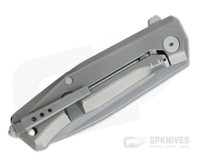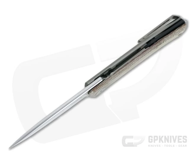 Handle:Â The semi-open back handle construction consists of a contoured and textured canvas Micarta top and titanium frame with a matching back spacer. Simple and elegant, the handles offer traction and comfort for secure, extended use. A durable composite material, canvas Micarta is rugged and provides traction even when wet. The integral frame lock is reinforced with a hardened steel insert preventing wear from the blade offering smooth operation and secure lockup over the life of the knife. The insert has an extended tab that also prevents lock over travel. A large hole at the pommel end allows for lanyard attachment.