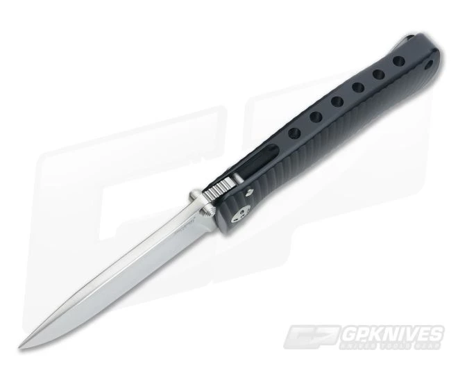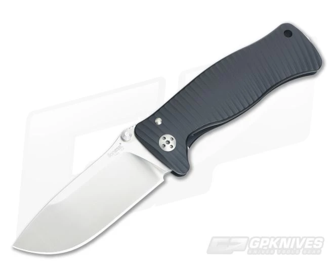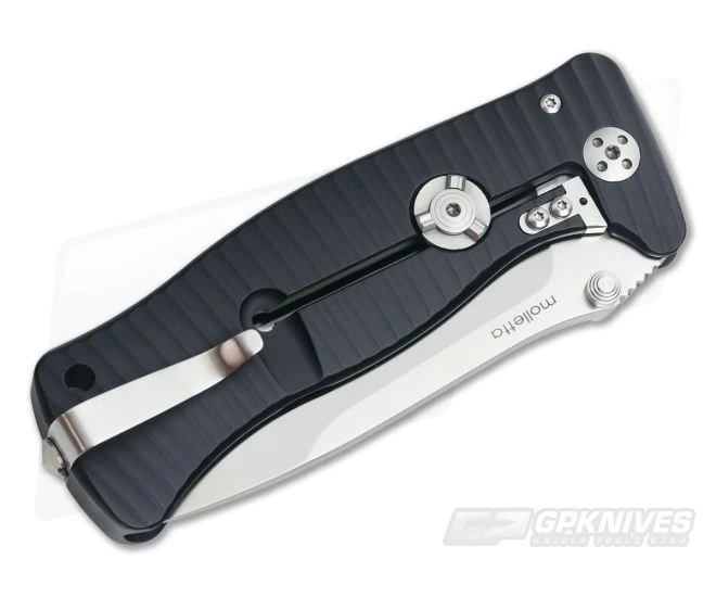 The Molletta designed LionSteel SR-1 Aluminum is the full size version of the innovative SR line of integral folders. The handle is milled from a single piece of ERGAL (Extra Refined Grain Aluminum) aluminum alloy and given a Black finish. The frame lock includes LionSteel’s patented RotoBlock safety system. A simple turn of the RotoBlock stabilizer locks the blade open converting the folder into a fixed blade knife. Stainless steel lock bar insert engages the blade for a solid lockup and is replaceable if needed due to wear. A gorgeous satin finished blade is ground from solid D2 tool steel. Includes a reversible tip-up deep carry pocket clip attached with a pointed screw that doubles as a glass breaker. Specialized tool for adjusting the pivot/reversing the pocket clip is included. Direct from LionSteel Knives.