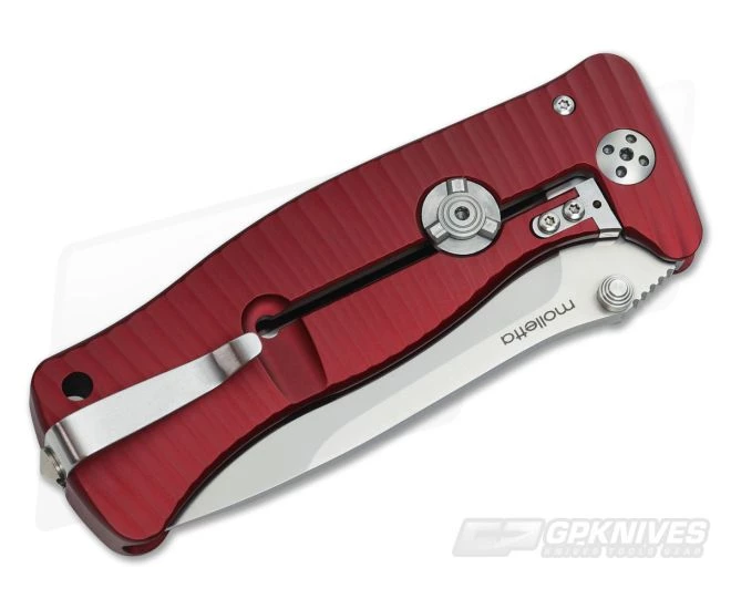 The Molletta designed LionSteel SR-1 Red Aluminum is the full size version of the innovative SR line of integral folders. The handle is milled from a single piece of ERGAL (Extra Refined Grain Aluminum) aluminum alloy and given a Red anodized finish. The frame lock includes LionSteel’s patented RotoBlock safety system. A simple turn of the RotoBlock stabilizer locks the blade open converting the folder into a fixed blade knife. Stainless steel lock bar insert engages the blade for a solid lockup and is replaceable if needed due to wear. A gorgeous satin finish rounds out the blade that’s ground from D2 tool steel. Includes a reversible tip-up deep carry pocket clip attached with a pointed screw that doubles as a glass breaker. Specialized tool for adjusting the pivot/reversing the pocket clip is included. Direct from LionSteel Knives.