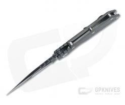 Blade:Â The modified Tanto blade is made from high performance CPM-20CV with a two-tone finish with machine satin on the compound “Nightmare” hollow grinds and “Manhattan Project” texture on the flats and spine. The shallow hollow grinds and false edge top delivers unstoppable piercing capability, while a deep hollow primary grind ends in a razor sharp plain cutting edge for optimal slicing performance. The top of the spine has jimping that extends to the frame, enhancing traction. The blade opens smooth on phosphor bronze washers via the oval blade hole. The iconic Strider choil is signed M. Strider.Â