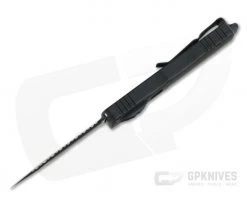 The Microtech Dirac takes the contours of the Halo, the size of the UTX-85 (just a bit smaller) and a top slide design and blends them together for a fantastic new every day carry auto from Microtech Knives. The double edge and top slide combination also make this Dirac fully ambidextrous, perfect for right or left-handed users! This all-black ‘Tactical’ version comes with black hardware, handles and CTS-204P Double Edge blade with one plain and one fully serrated edge.