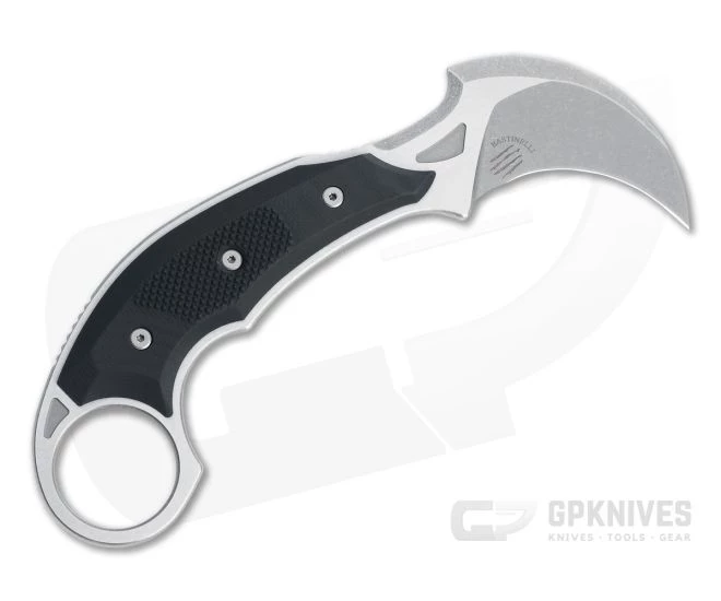 Designed by Bastinelli Knives in collaboration with Microtech, the Iconic Karambit is a modern interpretation of the classic Filipino Karambit. This right-hand carry version makes a powerful defensive tool as well as a practical, utility blade. This version comes with a stonewashed CTS-204P blade and black G10 handle scales.