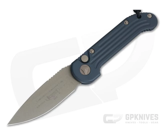 The L.U.D.T. (Large Underwater Demolition Team) out the side automatic knife model from Microtech has been a favorite among Spec Ops and first responders for nearly 20 years. This version features an Apocalyptic Bronzed drop point, M390 blade and a grooved black aircraft grade aluminum handle.