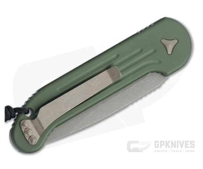 The L.U.D.T. (Large Underwater Demolition Team) out the side automatic knife model from Microtech has been a favorite among Spec Ops and first responders for nearly 20 years. This version features an Apocalyptic Bronzed drop point, M390 blade and a grooved OD Green aircraft grade aluminum handle.