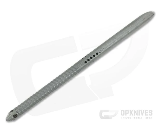 The Microtech TAC-P is a tactical Kubaton that is built with penetration in mind. Made from a robust 410 stainless steel tube, the handle section has machined knurling for a secure grip with a removable end cap with lanyard holes and glass breaker. The forward section has milled vent holes and a tapering cutout that ends in a razor sharp chisel tip. Make no mistake, this simple tool is highly effective for its intended purpose. Say goodbye to those hard to open juice boxes. This version comes with Mircotech’s blasted and tumbled Apocalyptic finish, Carbon Fiber pattern Kydex sheath and UltiClip.