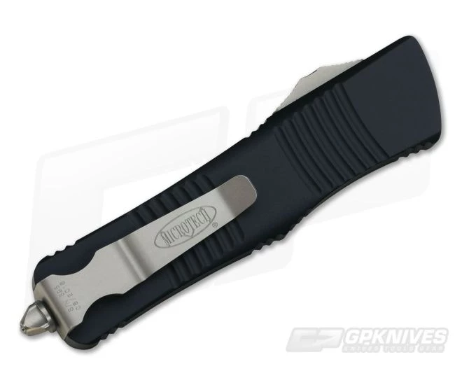 Handle:Â Robust, hard anodized, aircraft-grade alloy offers just over 4.25 inches of handle, excluding the breaker, substantial enough for large hands without becoming cumbersome in the pocket. The knife is comfortable in the hand, with contoured edges, while wide sections of jimping are perfectly placed for a secure grip. It is built with grey, proprietary Microtech hardware, integrated glass breaker end and pocket clip.
