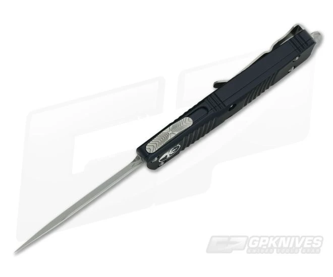 The Microtech Knives Troodon out the front automatic knife is a substantial tool while still retaining a compact size that can be easily carried every day. This knife is elegant enough for dress carry while being a fully capable cutting tool. This version is equipped with a double edge blade of stonewashed M390 and black, hard anodized handle. The Troodon is named after a bird-like dinosaur from the Campanian Age and is ready to strike.