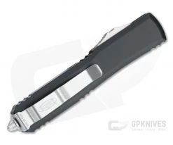 The Ultratech double action out-the-front automatic from Microtech sets the standard for the category. With a sleek, durable design, precision American made construction and premium materials, the Ultratech is a perfect everyday carry companion. This bayonet version has a black anodized aluminum handle and satin finished, partially serrated M390 blade.