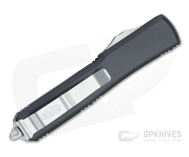 The Ultratech double action out-the-front automatic from Microtech sets the standard for the category. With a sleek durable design, precision American made construction and premium materials, the Ultratech is a perfect everyday carry companion. This T/E version has a black contoured aluminum handle and stonewashed M390 fully serrated Tanto blade.