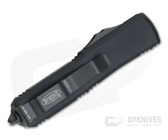 Handle:Â Smooth, Black anodized 6061-T6 aluminum has improved rounded edges creating not only a comfortable feel in-hand but a smooth transition in and out of your pocket. There are several areas of machine-grooved texturing around the outsides aiding in grip. This lighter more ergonomic grip is easy on the hands and eyes. The handle’s construction is completed with Microtech’s proprietary black tactical hardware, glass breaker end and pocket clip with individual serial number/date of production all in a matching black finish.