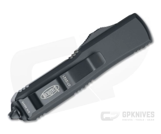 The Microtech UTX-85 double action out-the-front automatic is a slim everyday carry option that offers the same durable construction and solid performance in a more compact package (15% smaller than an Ultratech or 85% the size). This Tactical version has a black contoured handle, matching hardware and black, fully serrated M390 Tanto blade.